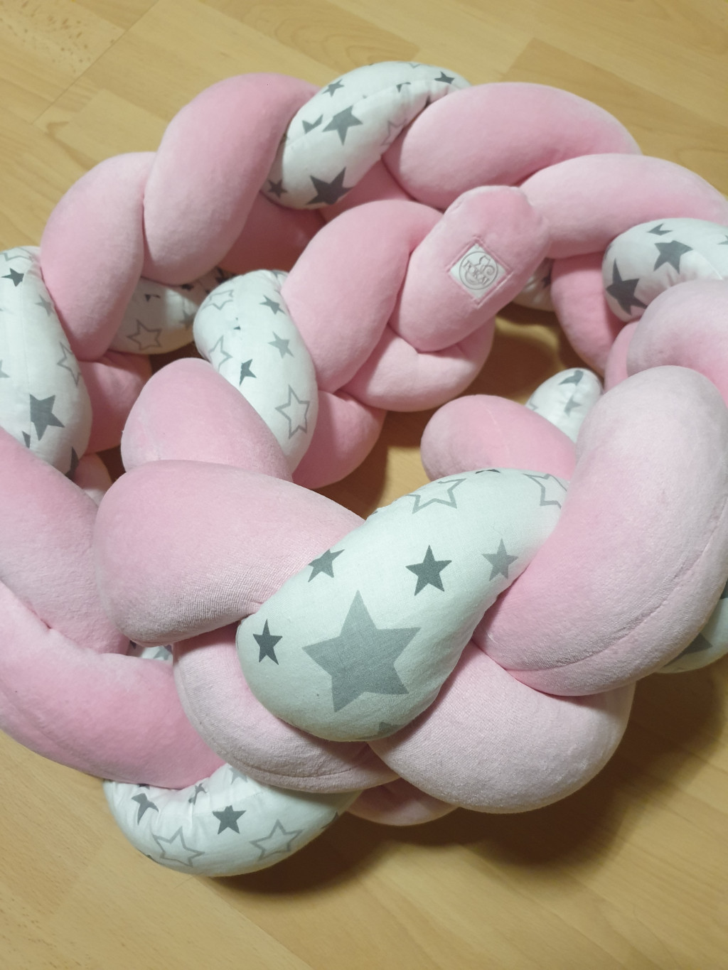 3 fonatos, rózsaszín - szürke csillagos fonott rácsvédő, bébiplüss és pamutvászon anyagokból, mely kényelmesen kibéleli a kiságyat. Keresd hozzá a kollekció többi darabját is.