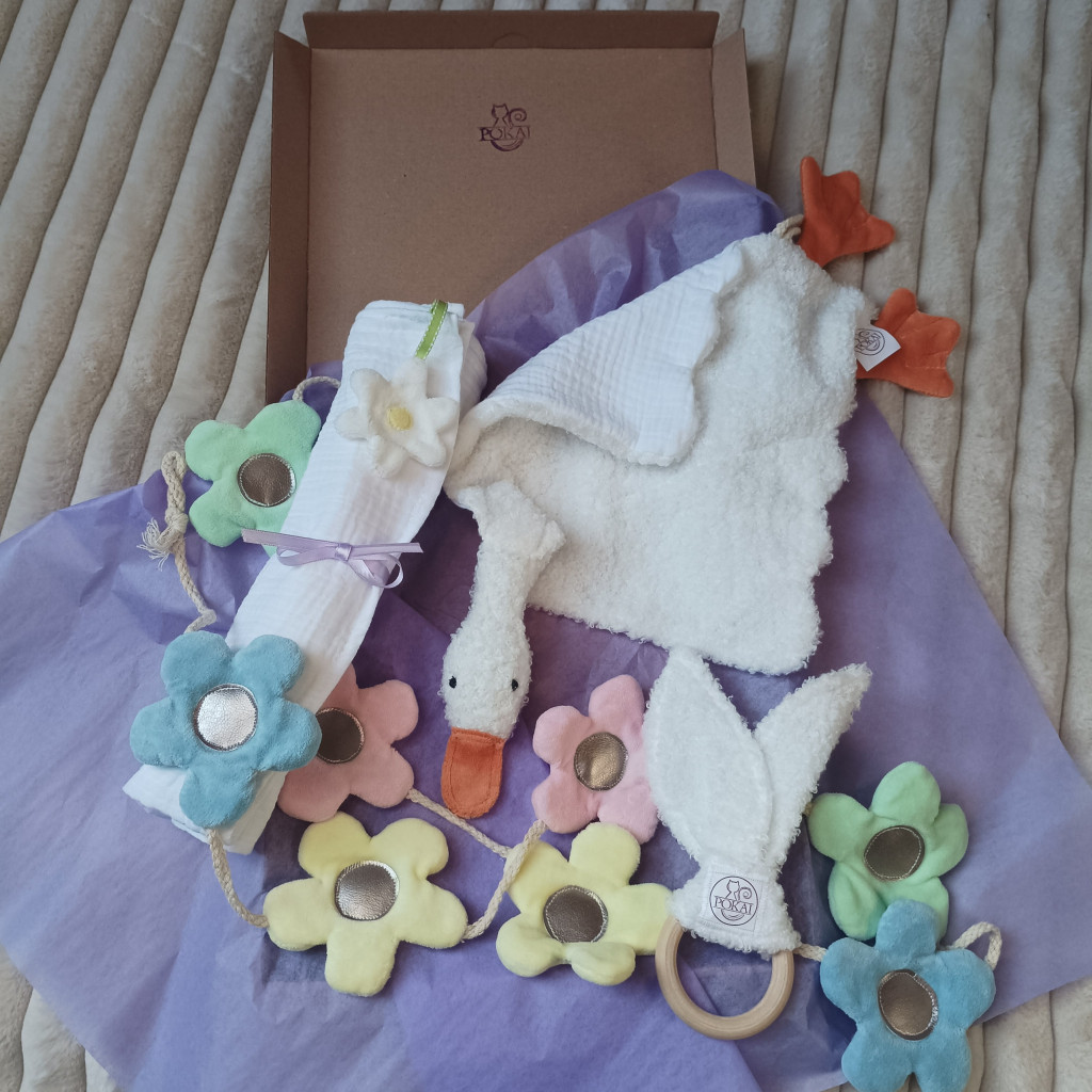 Ez a válogatás több, mint egyszerű termékek összessége: a kézműves gondoskodás és a prémium minőség ötvözete, amely végigkíséri a babát az első hónapok felfedezéseitől a békés éjszakákig. Ideális választás babaváró bulira, keresztelőre vagy az első látogatás alkalmával
